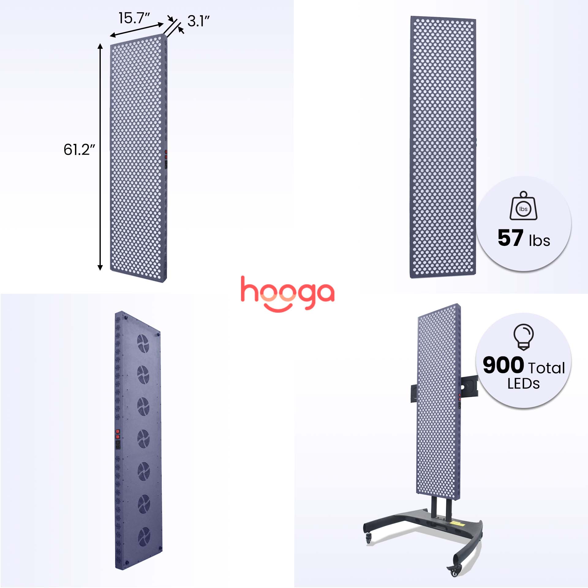 PRO4500 is a high powered, truly full body red and near infrared light therapy device designed to provide you with affordable, effective light therapy at home. The advantage of this large light therapy device is that you can treat your entire body at once. Full body light therapy is beneficial for enhanced energy, recovery from workouts, faster wound healing, hair regrowth, pain relief and much more! This panel features 900 LEDs emitting red and near infrared light at clinically proven wavelengths. It stands more than 5 feet tall, making it one of the largest panels of its kind. It's modular and stand compatible, meaning it can be connected to other devices in the PRO series and it can be attached to either of our mobile stands.